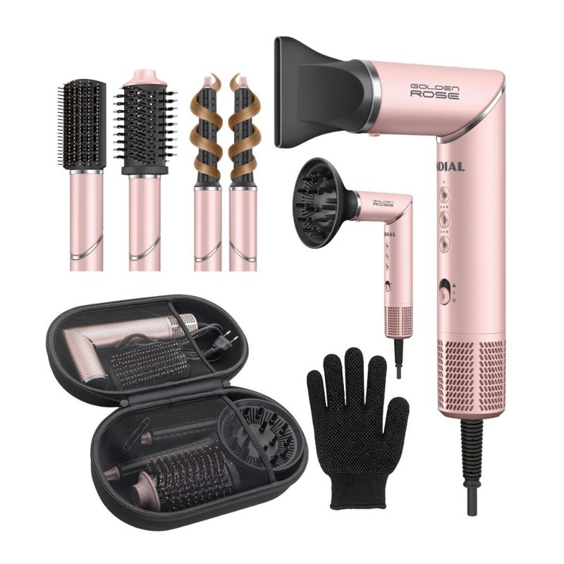 O Secador Multifuncional 5 em 1 Mondial Golden Rose. é um aliado versátil, potente e multifuncional que acompanha todas as suas versões, simplificando a rotina: seca e finaliza ao mesmo tempo, unindo praticidade e liberdade para o dia a dia. O motor Brushless oferece leveza, menos ruído e um fluxo de ar intenso que seca seu cabelo mais rápido, com menos calor nos fios. Já o gerador de íons ajuda a reduzir o frizz, deixa o cabelo mais macio e realça o brilho natural.